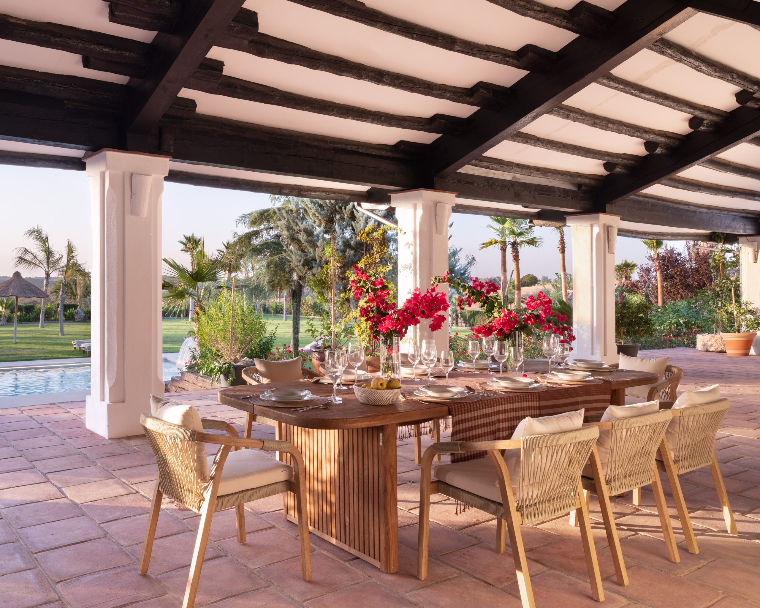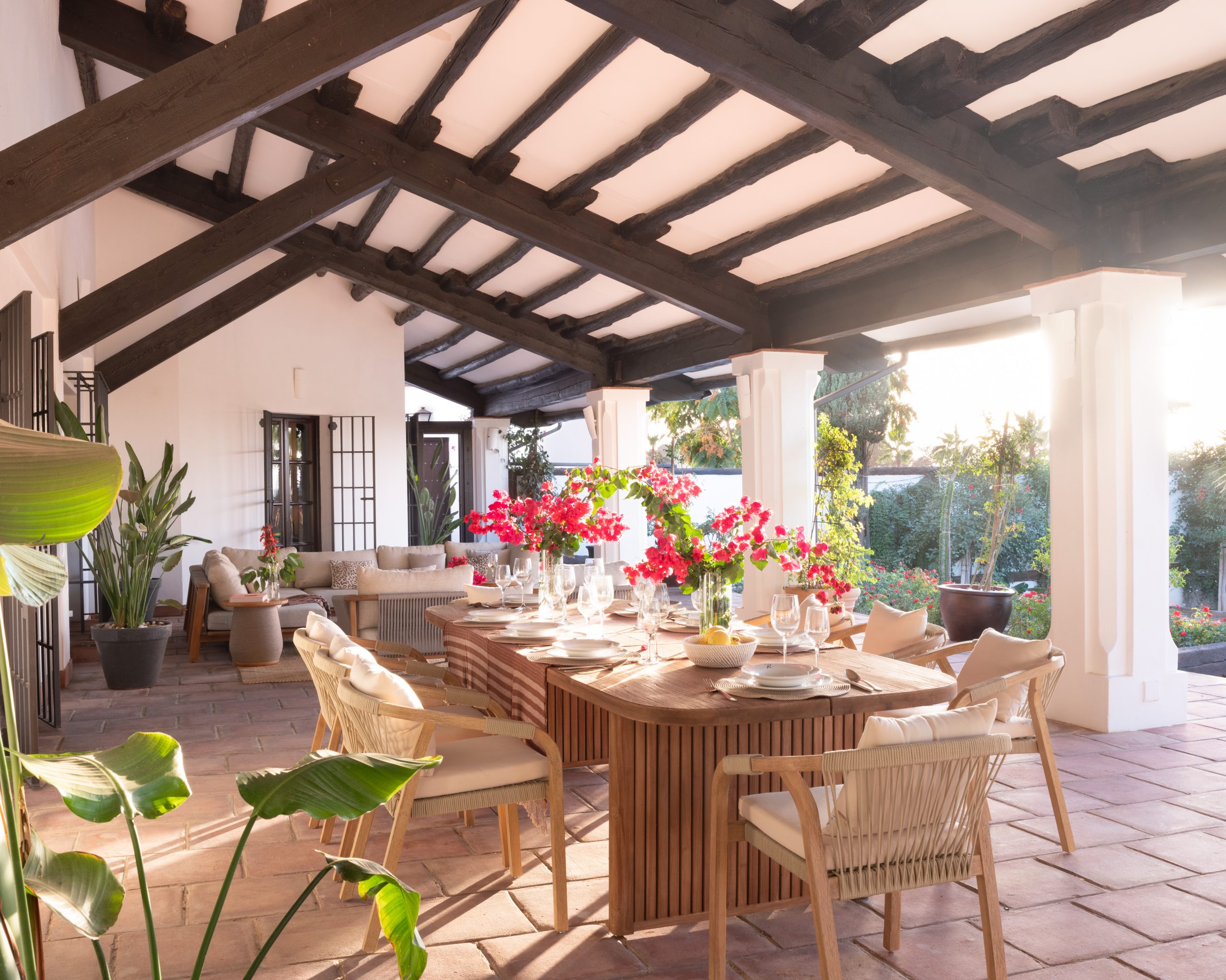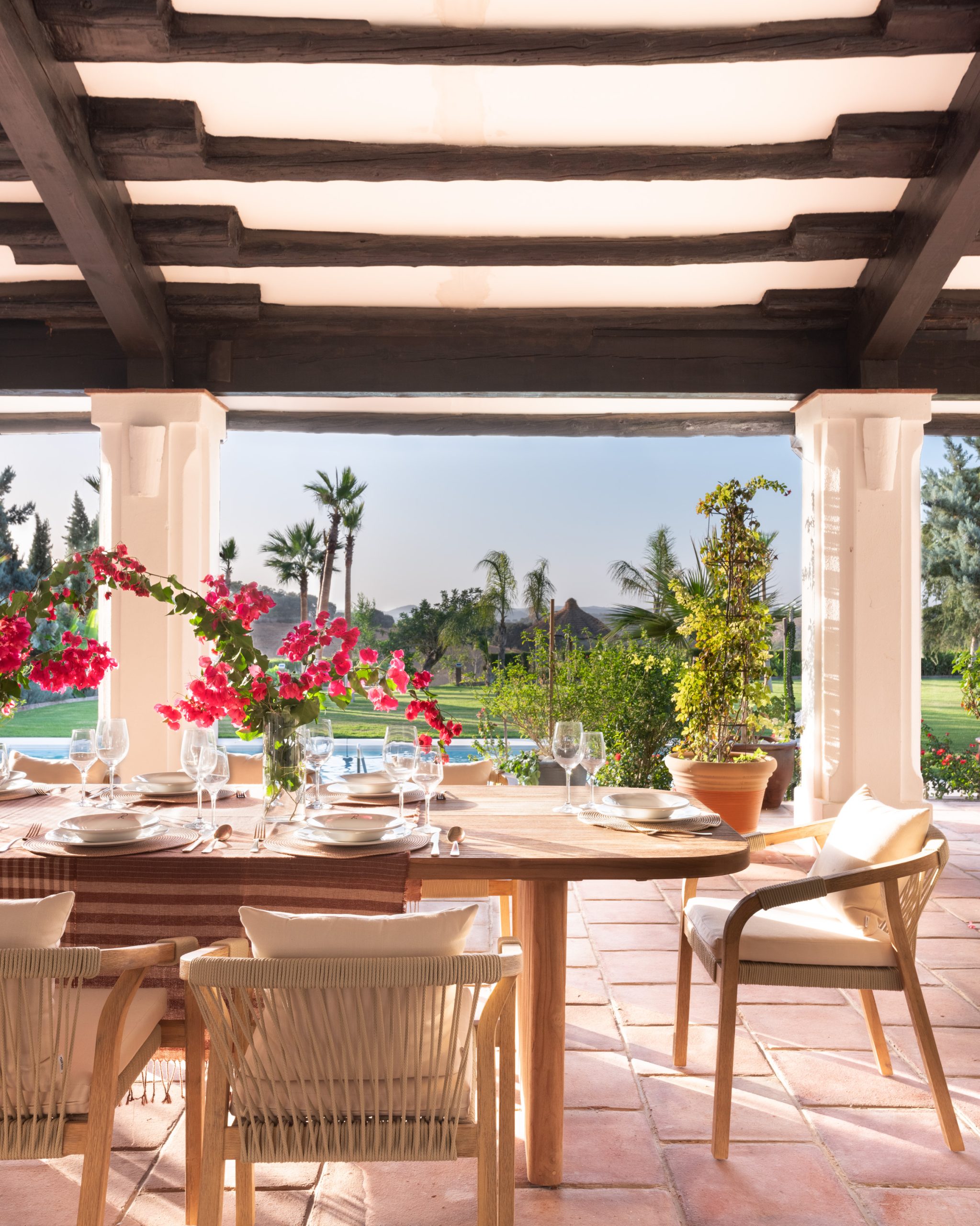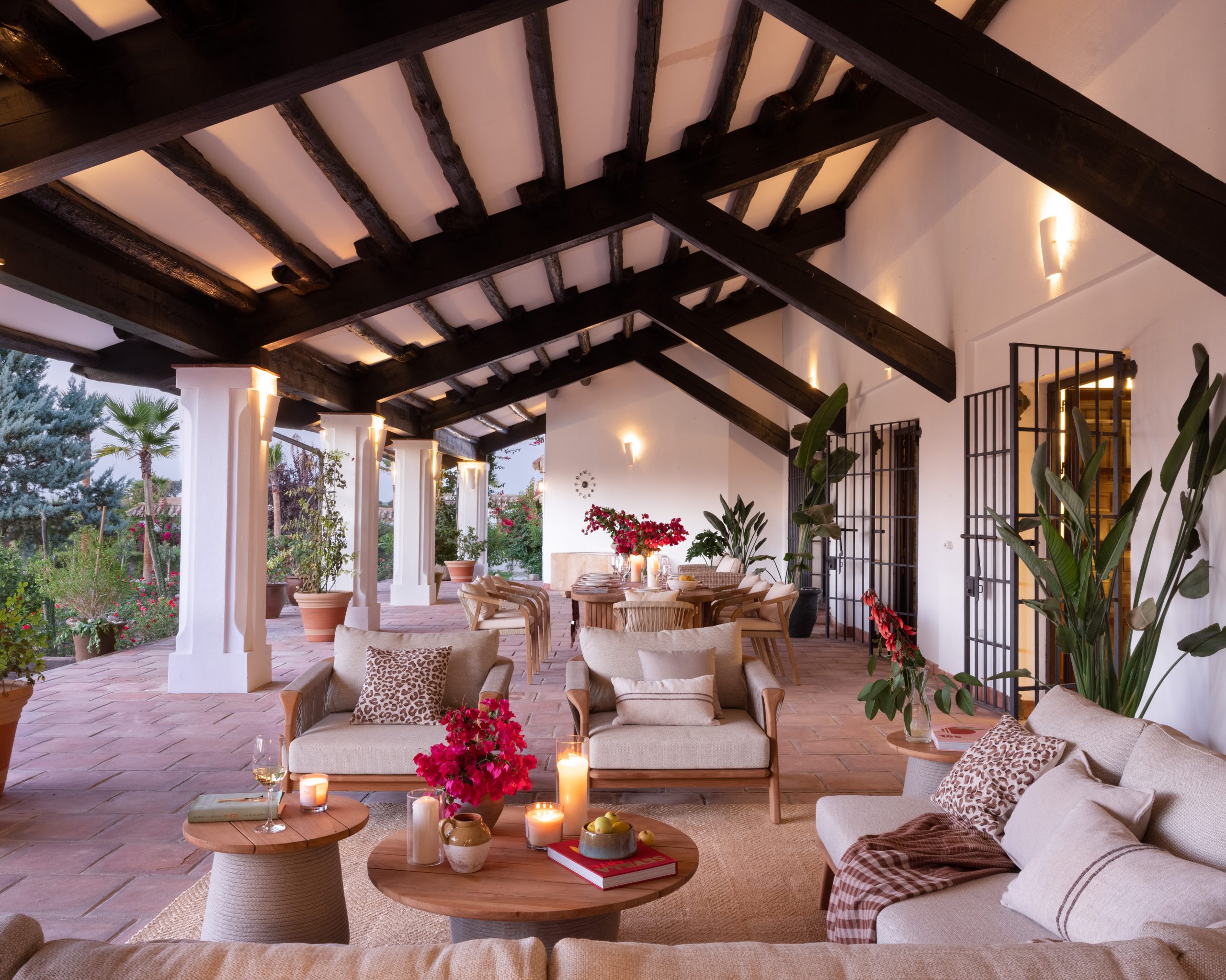 At the heart of the finca, the patios form a natural meeting place where indoor and outdoor living flow seamlessly into one another. Framed by arches and surrounded by greenery, they offer a calm, open setting to gather, relax or enjoy a quiet moment throughout the day. With generous seating areas and direct access to the main house, the patios invite guests to connect, linger and feel at ease.